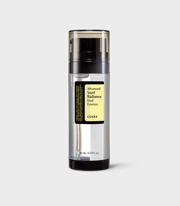 The COSRX Advanced Snail Radiance Dual Essence is a unique skincare product designed to enhance skin elasticity and radiance. The COSRX Advanced Snail Radiance Dual Essence features a dual-chamber design where high-efficacy snail essence and radiance essence mix upon pumping to deliver both plumping and brightening care in one application​ . Key ingredients include: