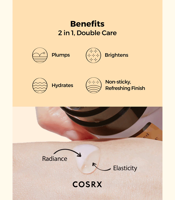 - It helps to plump, brighten, hydrate the skin, and provides a non-sticky, refreshing finish​ (COSRX Official)​.